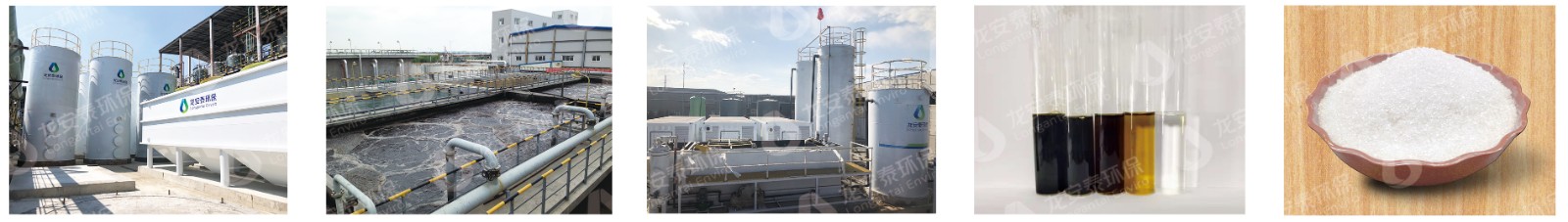 通過龍安泰系列催化氧化工藝對高濃高鹽廢水進行深度處理達到脫除色度,降低COD的目的,經處理后,蒸發出水無色透明、純凈度高、可直接回用;蒸發出鹽潔白、純度高,可回用到企業生產端實現循環利用零排放。